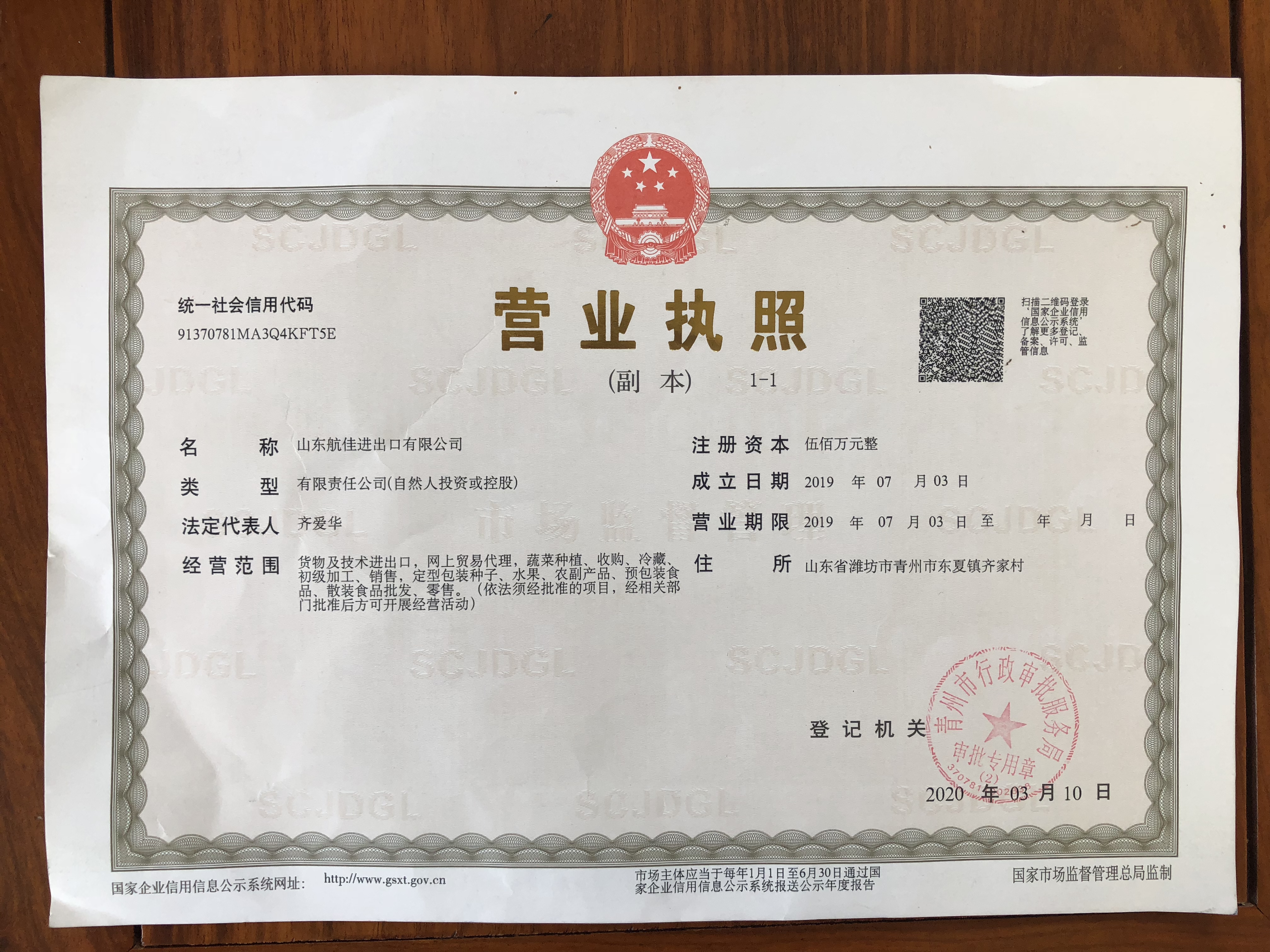 貨物及技術進出口,網上貿易代理,蔬菜種植、收購、冷藏、初級加工、銷售,定型包裝種子、水果、農副產品、預包裝食品、散裝食品批發、零售。(依法須經批準的項目,經相關部門批準后方可開展經營活動) |